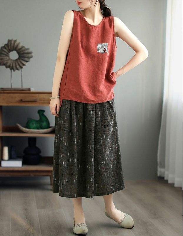 民族風拼接棉麻百搭背心【買一送一】咖色+橘紅各一件(到手2件!每件均價499元!)