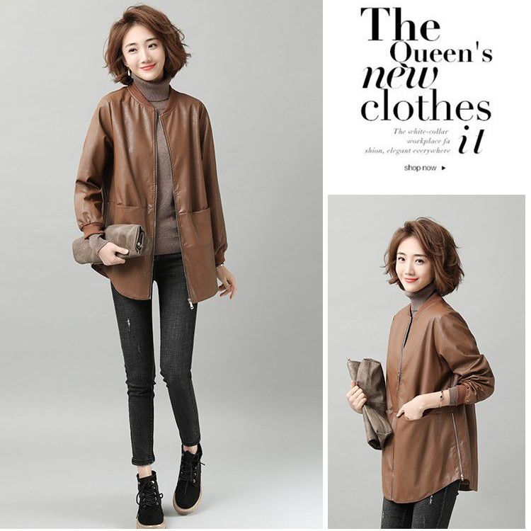 女士中長款寬鬆綿羊皮皮衣【棕色】一件