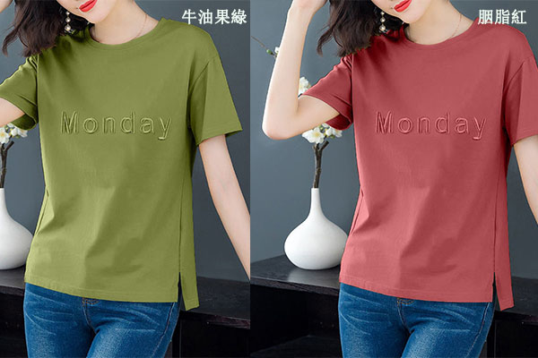 Monday字母簡約純色T恤【買一送二】牛油果綠+淺紫+胭脂紅各一件(到手3件!每件均價200元!)