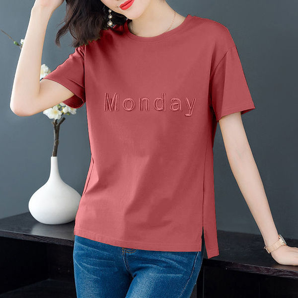 Monday字母簡約純色T恤【買一送二】牛油果綠+墨綠+胭脂紅各一件(到手3件!每件均價200元!)