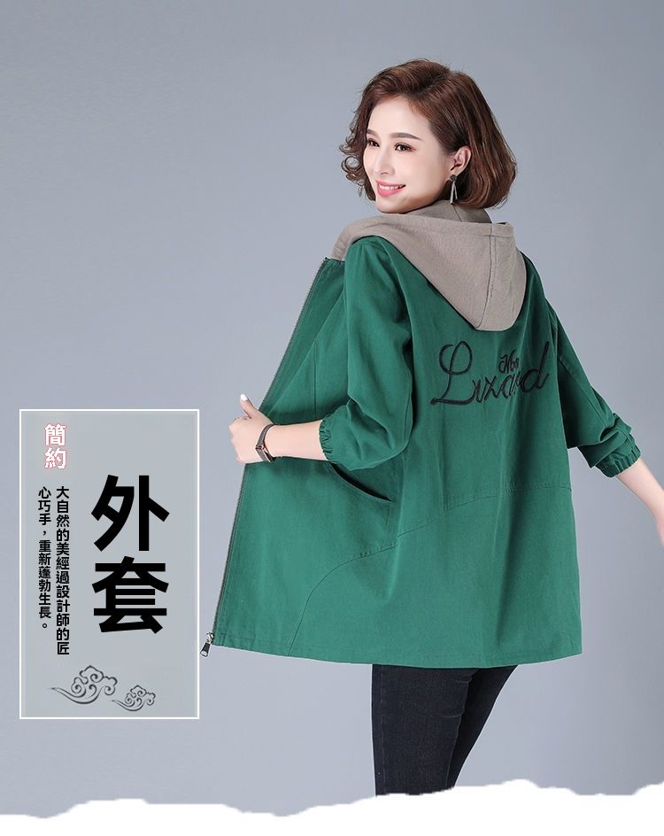 加厚刺繡中長款外套(加400秒殺2件!)【卡其色】+【綠色】各一件(到手2件!每件均價749元!)