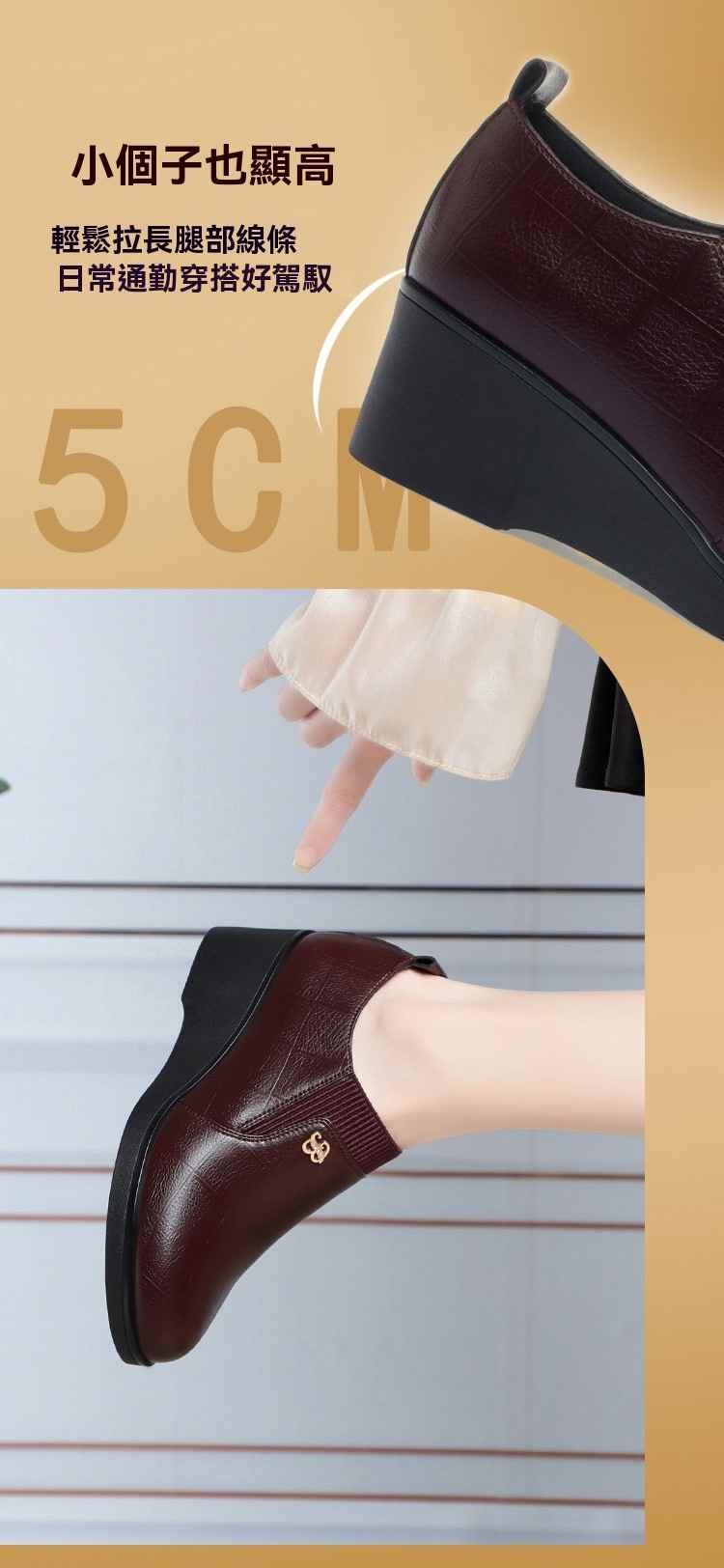 坡跟增高軟皮復古舒適女鞋【買一送一】【黑色】+【酒紅色】各一雙(到手兩雙,每雙均價549元!)