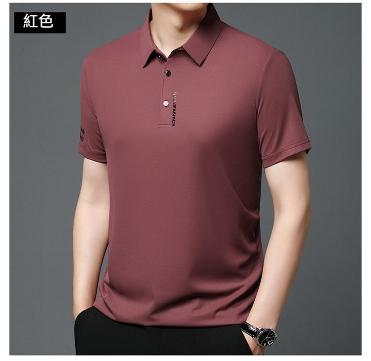 舒適休閒柔軟親膚冰絲POLO衫【買一送一】豆綠色+紅色各一件(到手兩件,均價每件649元)