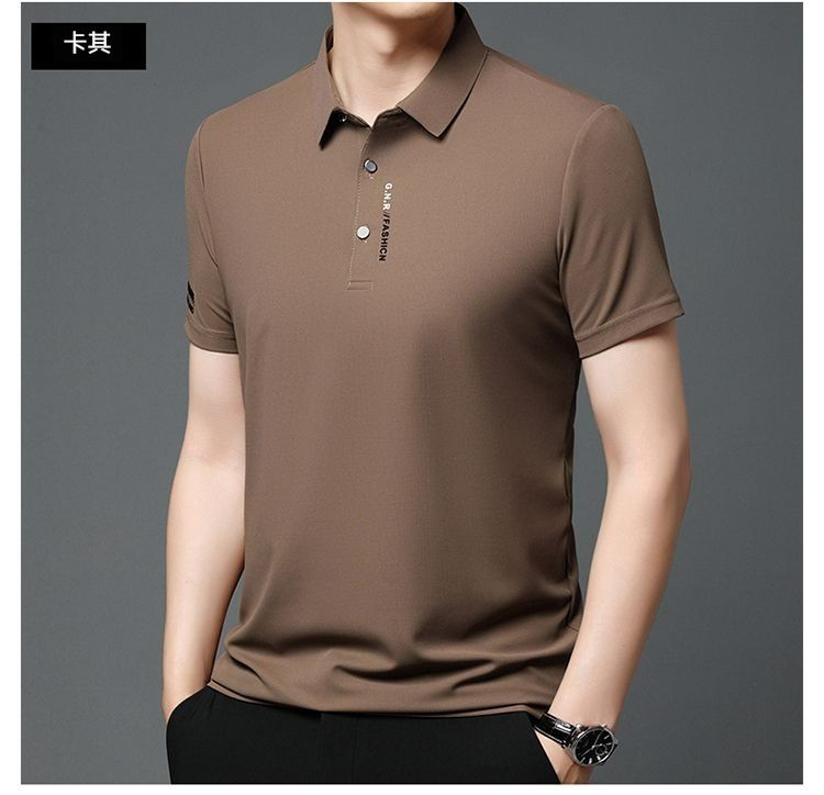 舒適休閒柔軟親膚冰絲POLO衫【買一送一】卡其色+黑色各一件(到手兩件,均價每件649元)