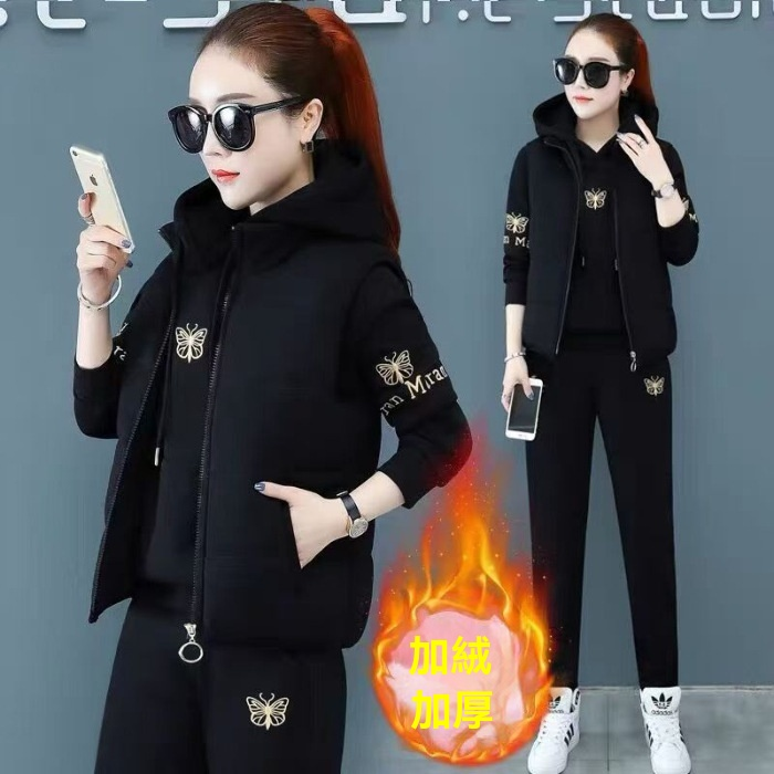 中老年加絨加厚運動服馬甲套裝【黑色】一組