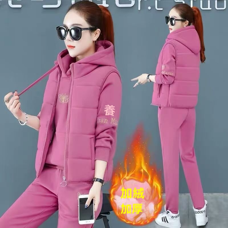 中老年加絨加厚運動服馬甲套裝【玫紅色】一組