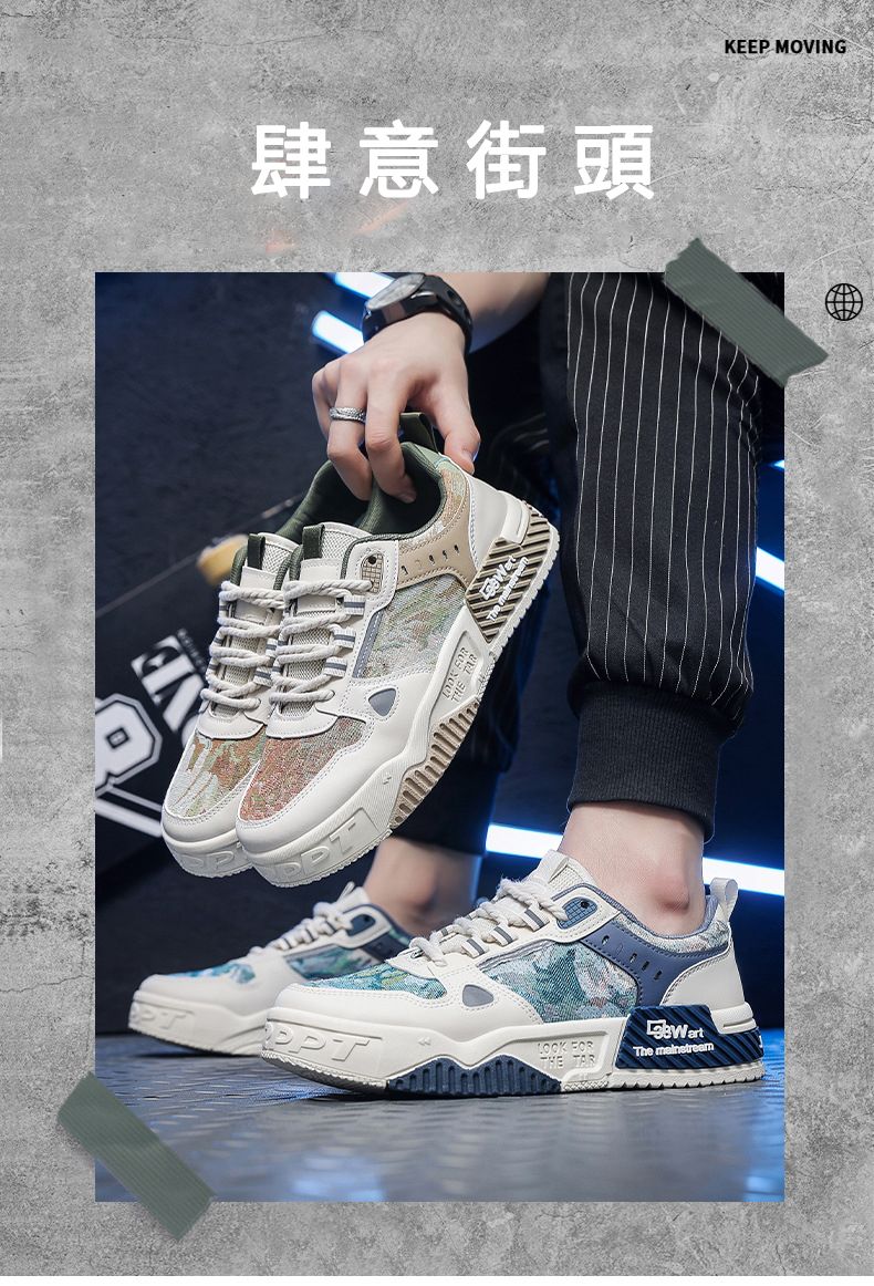 【如履平地】男士透氣百搭低幫休閒鞋【藍色】+【綠色】各一雙(優惠400)