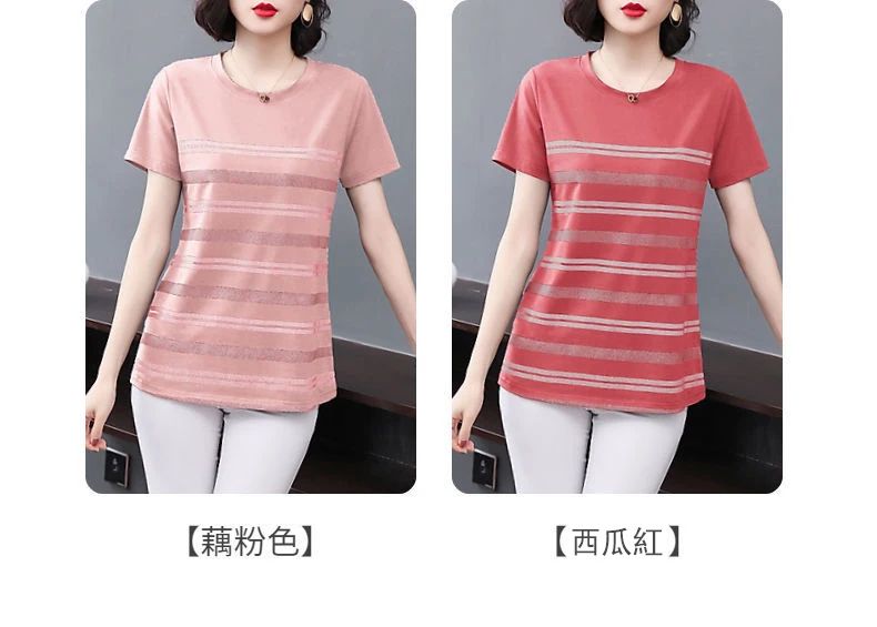 中年媽媽中長款條紋上衣【買一送一】【紅色】+【粉色】各一件(每件499元)