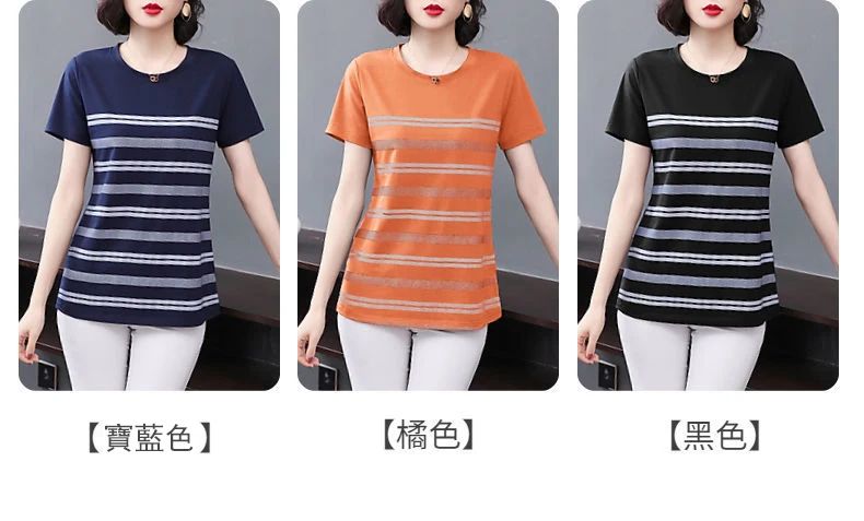 中年媽媽中長款條紋上衣【秒殺5件!】【黑色】+【藍色】+【紅色】+【橘色】+【粉色】各一件(每件340元)
