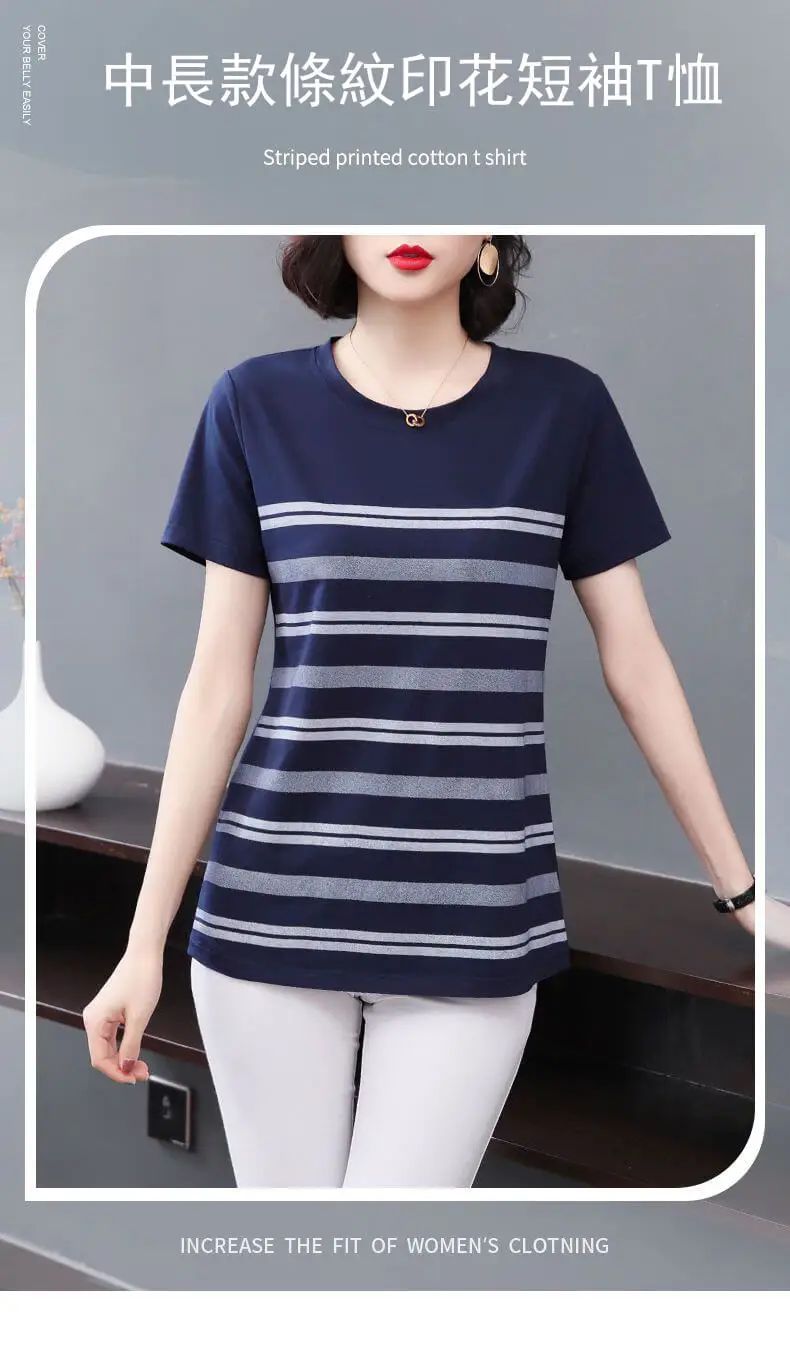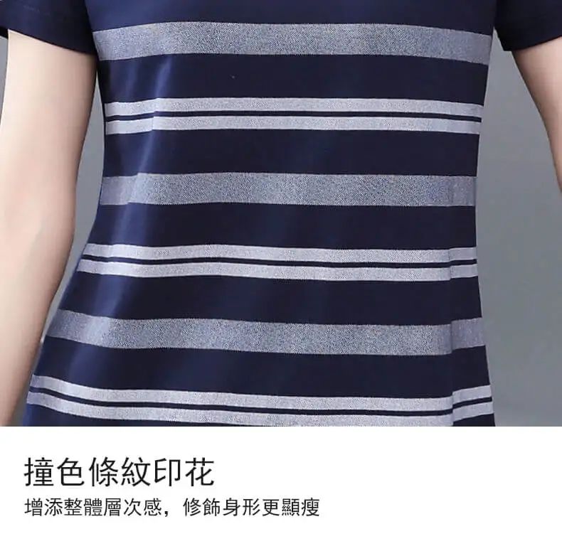 中年媽媽中長款條紋上衣【買一送一】【黑色】+【藍色】各一件(每件499元)