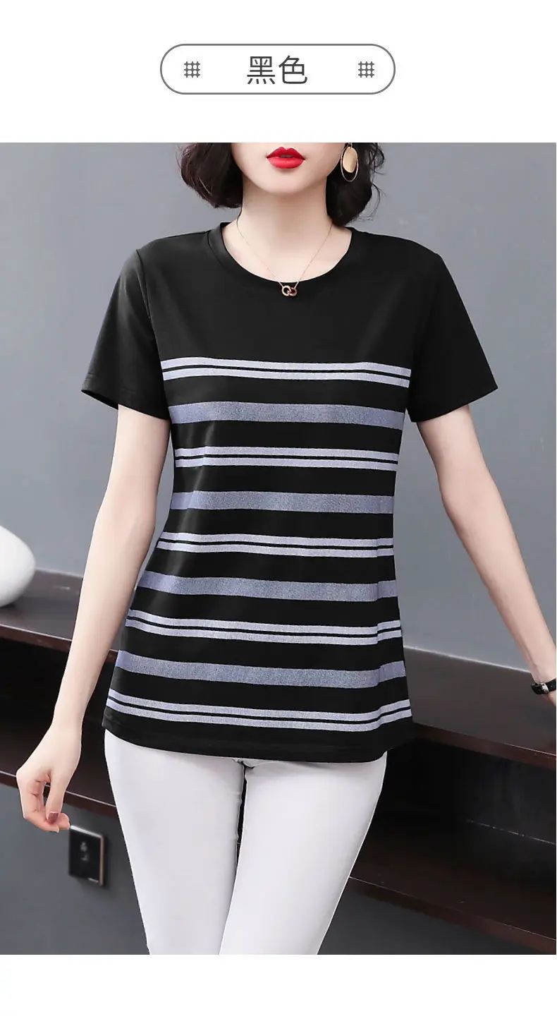中年媽媽中長款條紋上衣【買一送一】【黑色】+【粉色】各一件(每件499元)