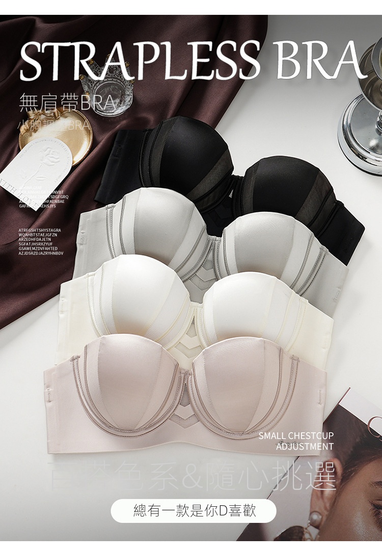 夏季抹胸可拆卸提拉無痕半杯無肩帶內衣【買一送一】香檳色+淺灰色各一件(到手兩件,每件均價649元!)