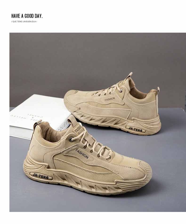 輕潮復古軟彈增高休閒男鞋【咖色】+【灰色】各一雙(到手2雙,每雙均價549元!)