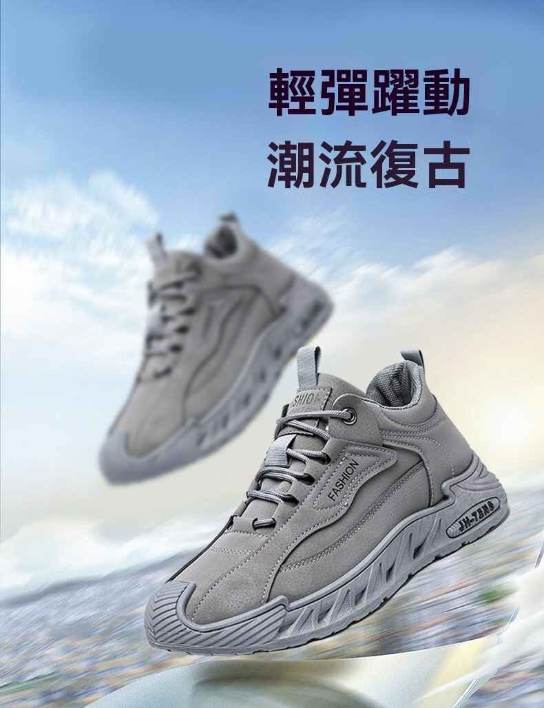 輕潮復古軟彈增高休閒男鞋【灰色】2雙(到手2雙,每雙均價549元!)