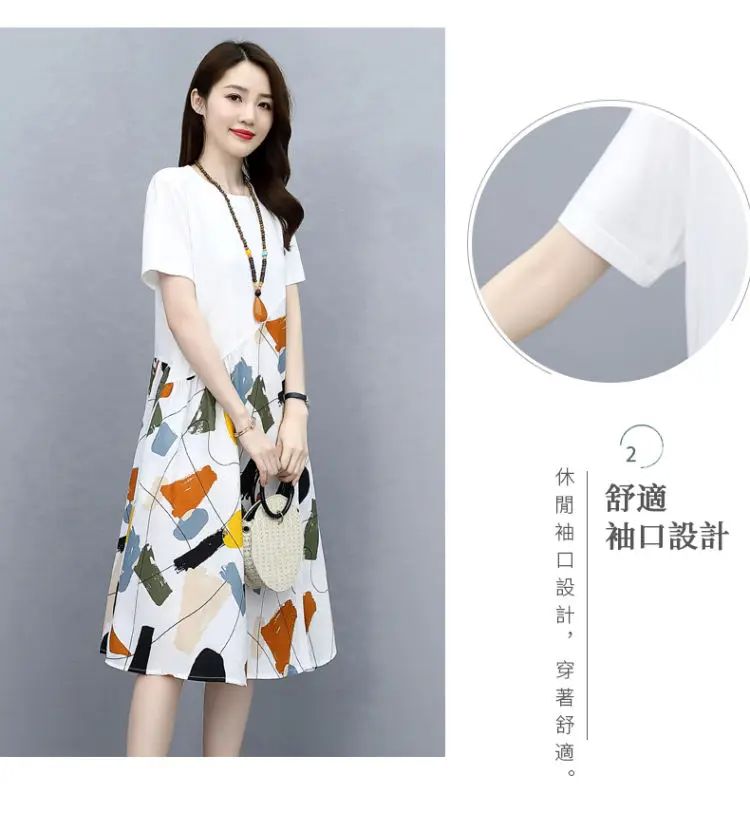 冰涼清爽拼接印花爆款連衣裙【買一送一】白色+藍色各一件(到手兩件,每件均價549元)