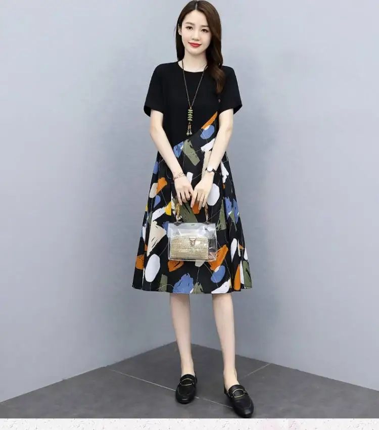 冰涼清爽拼接印花爆款連衣裙【買一送一】白色+黑色各一件(到手兩件,每件均價549元)