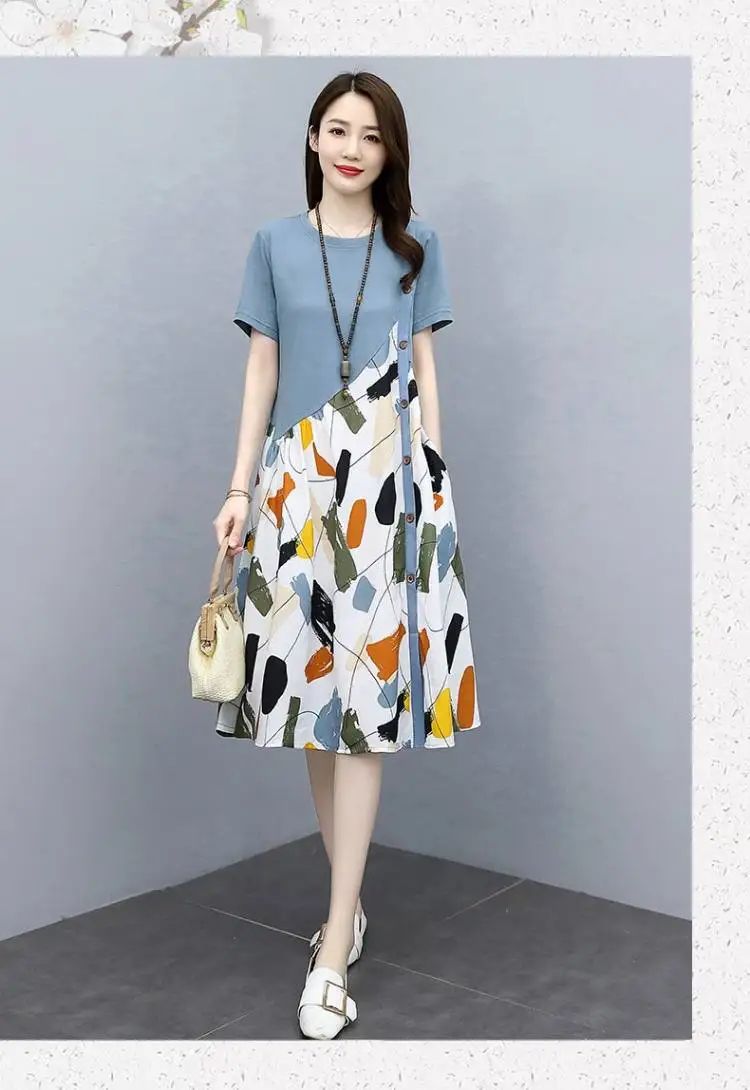 冰涼清爽拼接印花爆款連衣裙【買一送一】藍色+黑色各一件(到手兩件,每件均價549元)