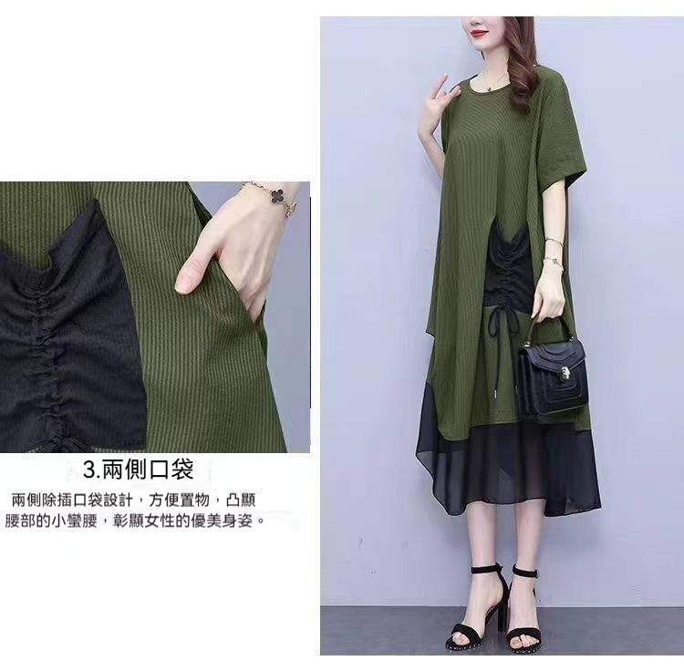 夏季顯瘦遮肉氣質拼接中長款連衣裙【買一送一】綠色+黑色各一件(到手兩件,每件均價549元)