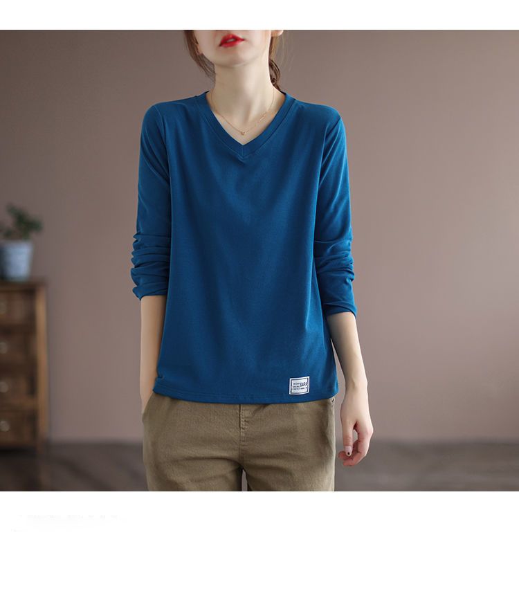 V領百搭女士純色長袖上衣【買一送二】【紅色】+【黃色】+【藍色】各一件(到手3件,每件均價333元!)