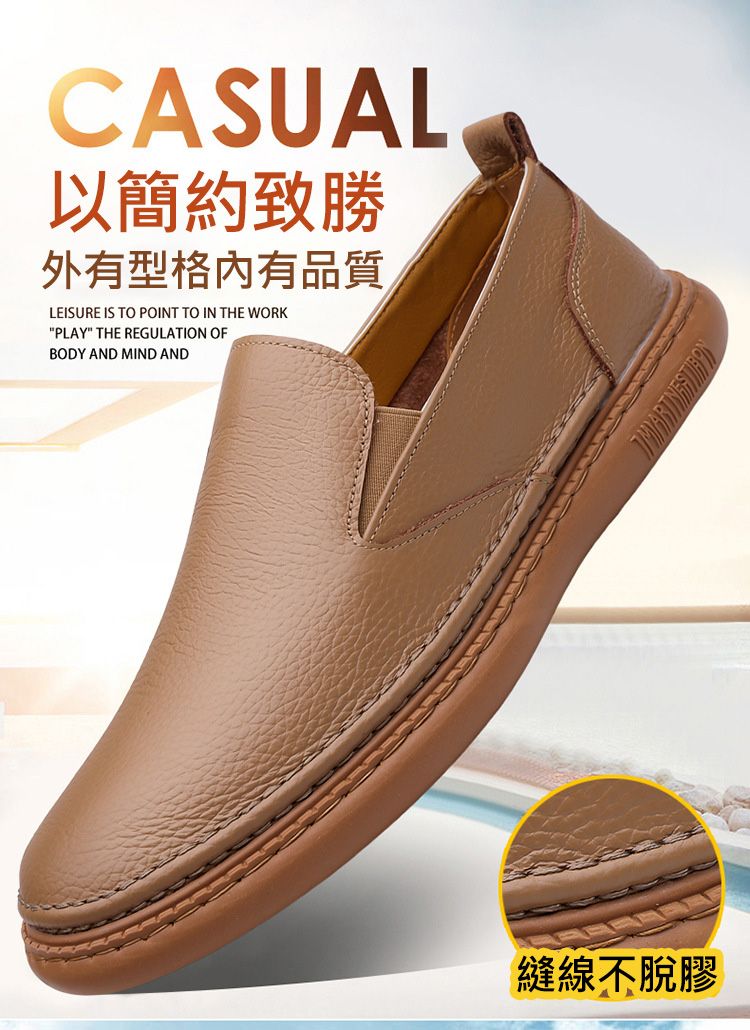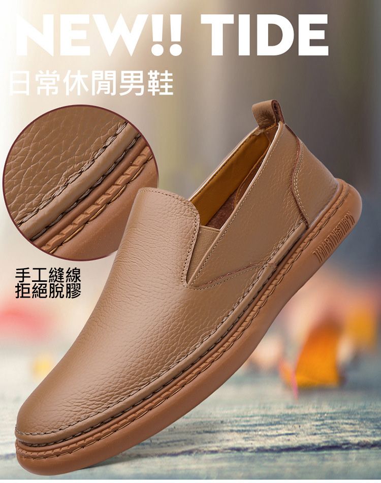 透氣懶人一腳蹬軟底休閒皮鞋【米色】+【棕色】各一雙(優惠400)