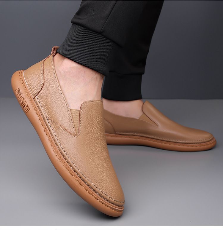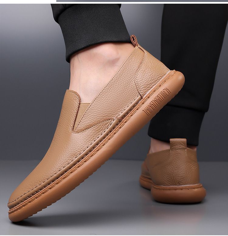 透氣懶人一腳蹬軟底休閒皮鞋【棕色】一雙