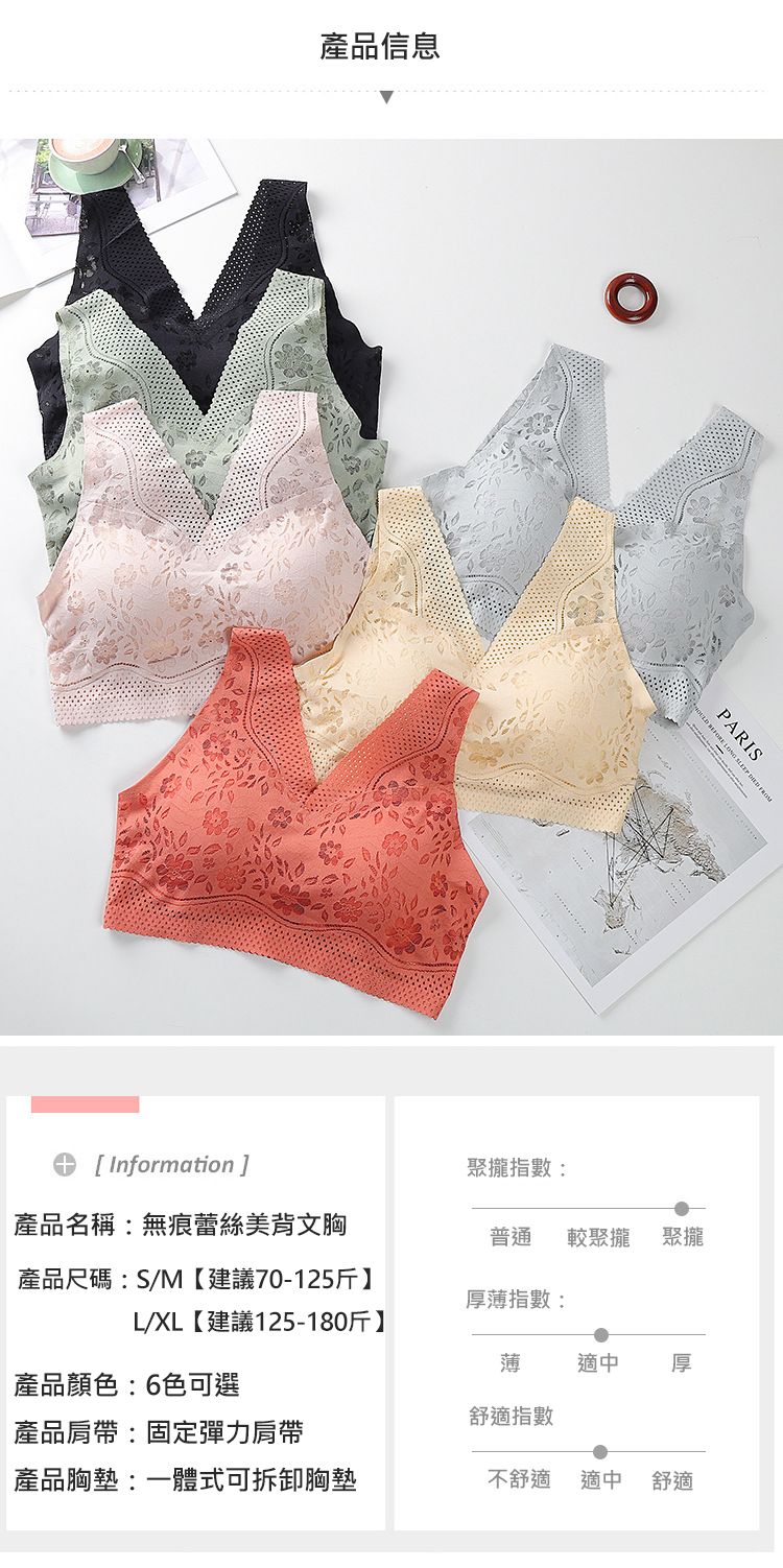 蕾絲美背帶胸墊無痕內衣【買一送二】膚色+綠色+桔紅色各一件(到手3件,每件均價333元!)