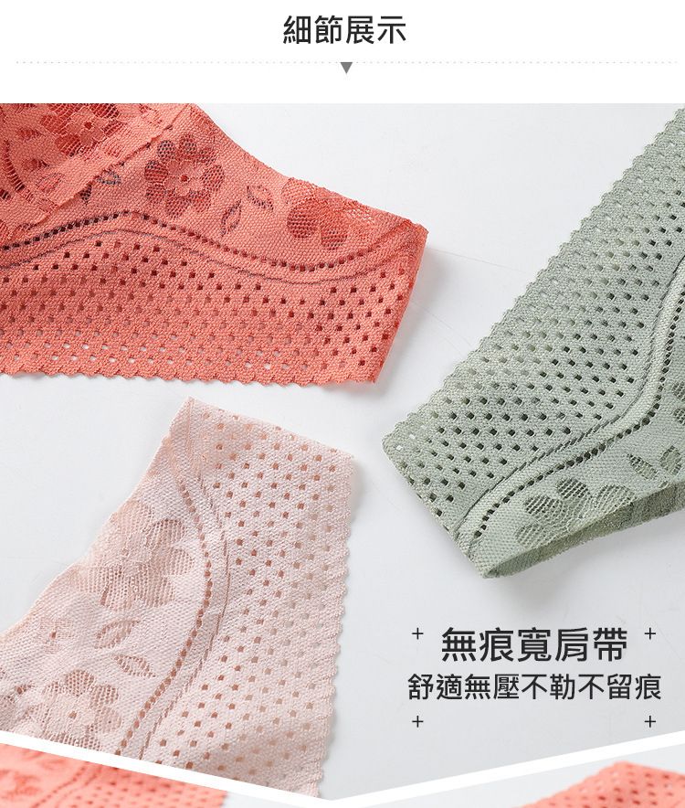 蕾絲美背帶胸墊無痕內衣【買一送二】綠色+豆沙色+桔紅色各一件(到手3件,每件均價333元!)