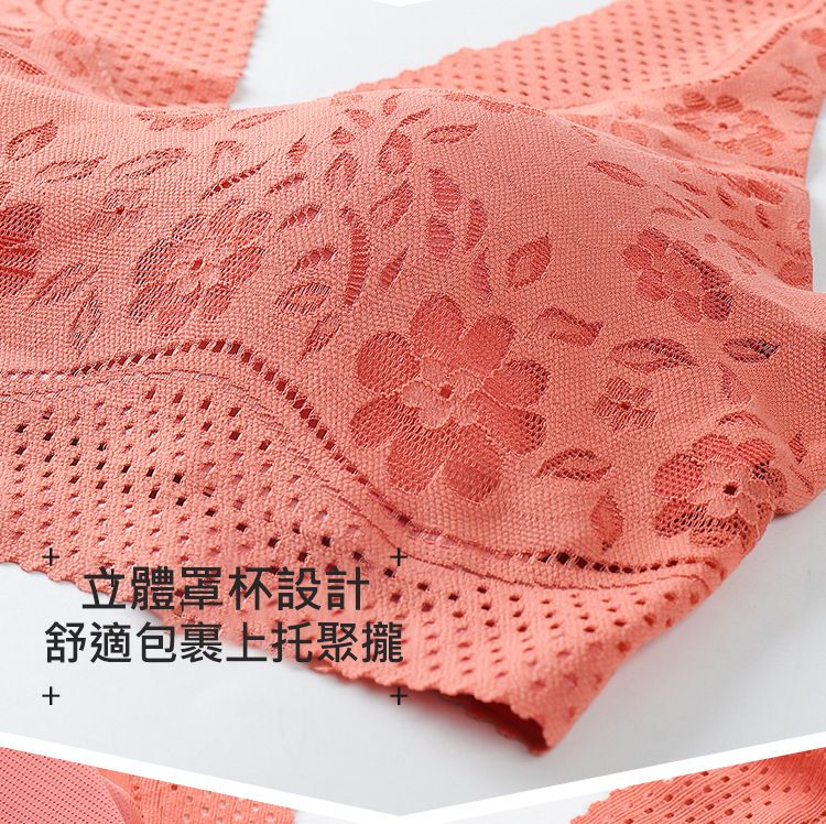 蕾絲美背帶胸墊無痕內衣【買一送二】膚色+豆沙色+桔紅色各一件(到手3件,每件均價333元!)