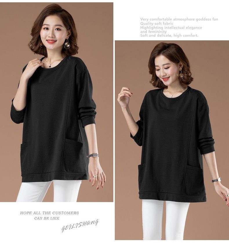 純棉新款女士長袖上衣【買一送一】【黑色】+【桔紅色】各一件(每件低至649元)