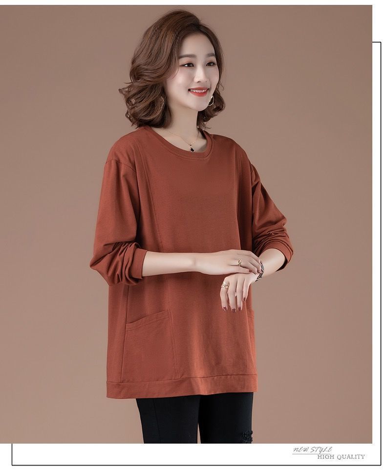 純棉新款女士長袖上衣【買一送一】【桔紅色】+【深藍色】各一件(每件低至649元)
