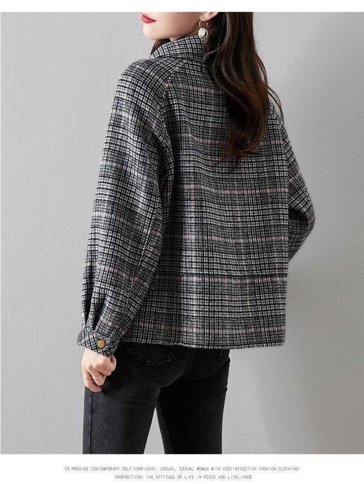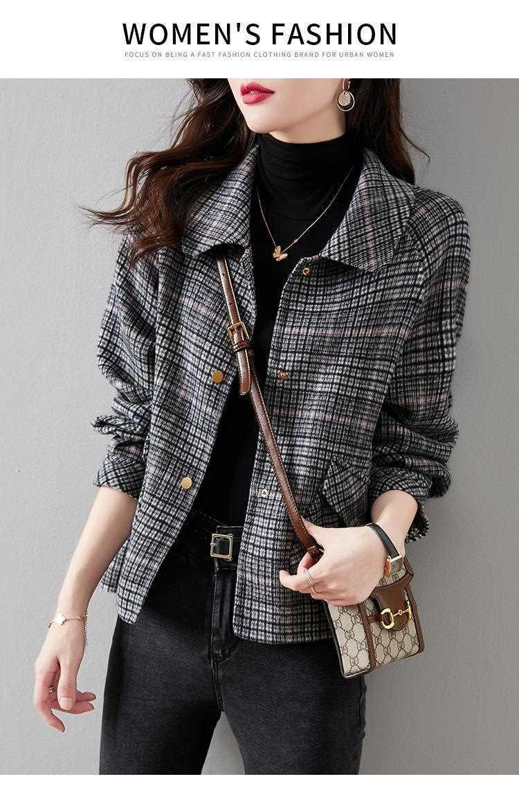 小香風短款格子粗花毛呢外套1件