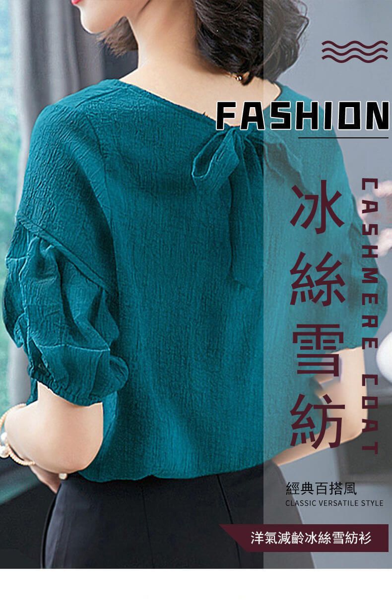 冰絲雪紡衫【買一送一】【枯黃色】+【孔雀綠】各一件(每件649元)