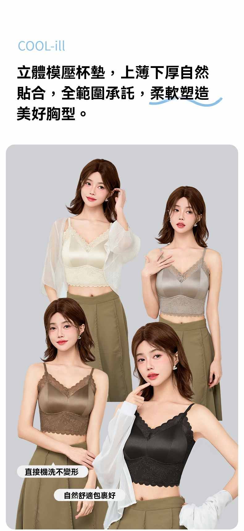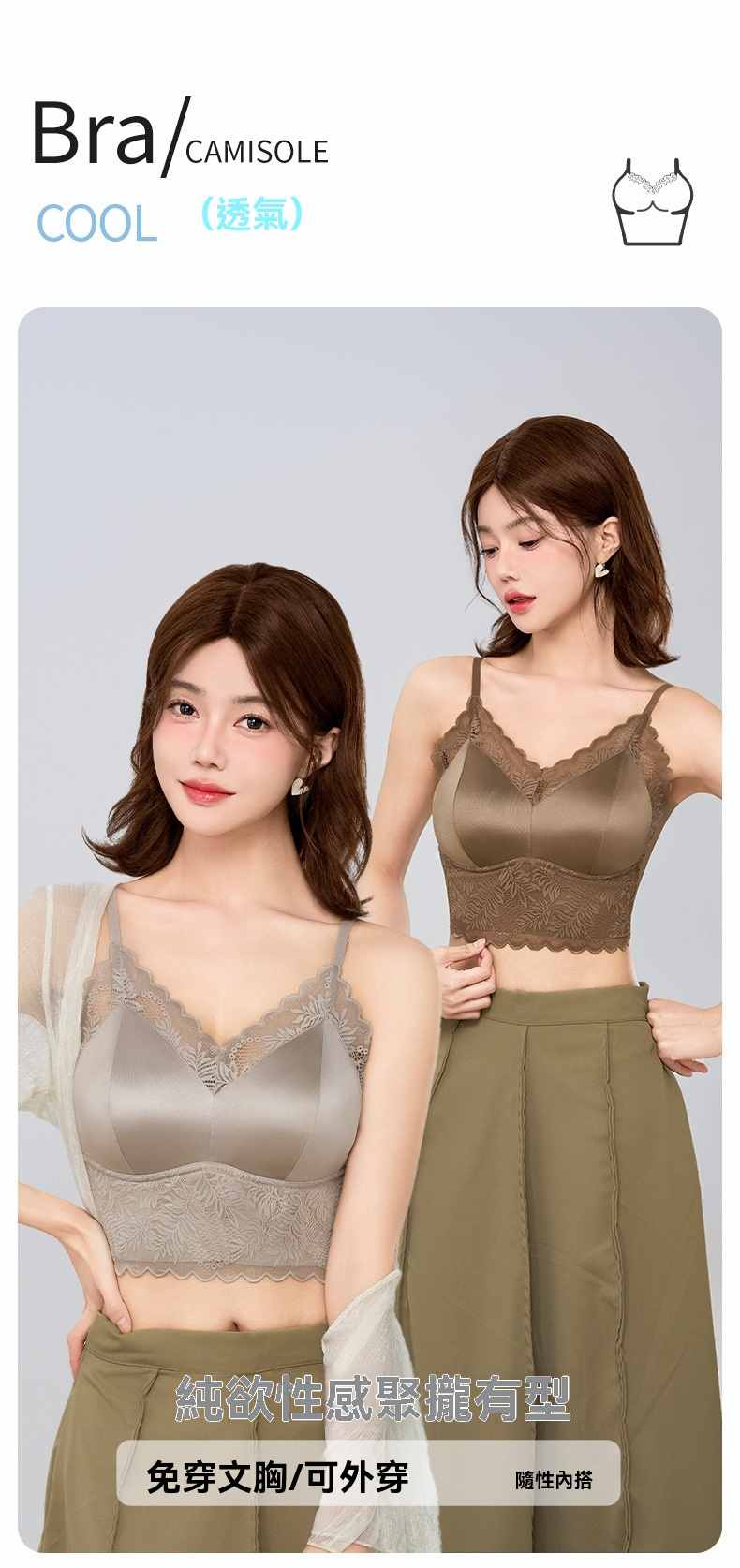 一體式無鋼圈固定杯美背文胸【白色】+【奶咖色】+【棕色】各一件(到手3件,每件均價333元!)