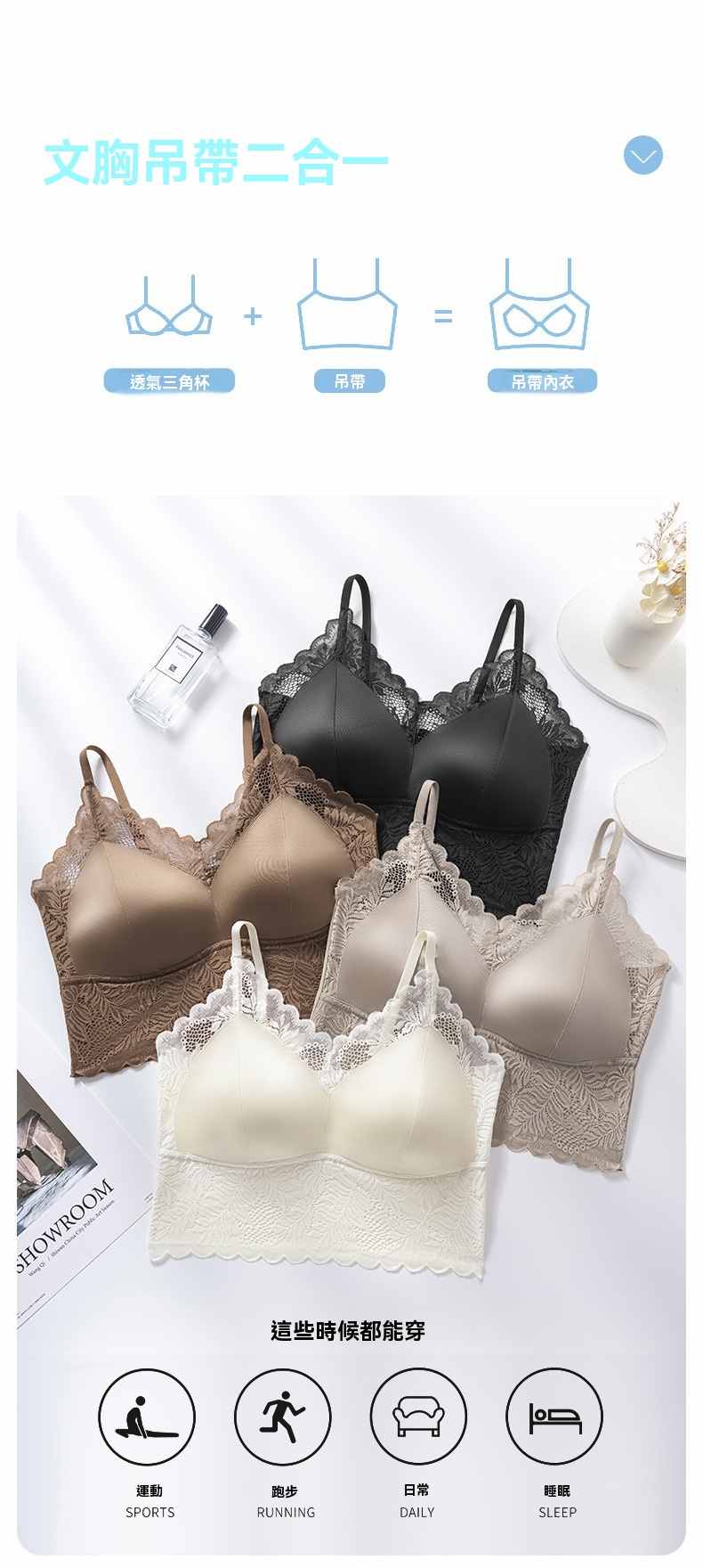 一體式無鋼圈固定杯美背文胸【奶咖色】+【棕色】+【黑色】各一件(到手3件,每件均價333元!)