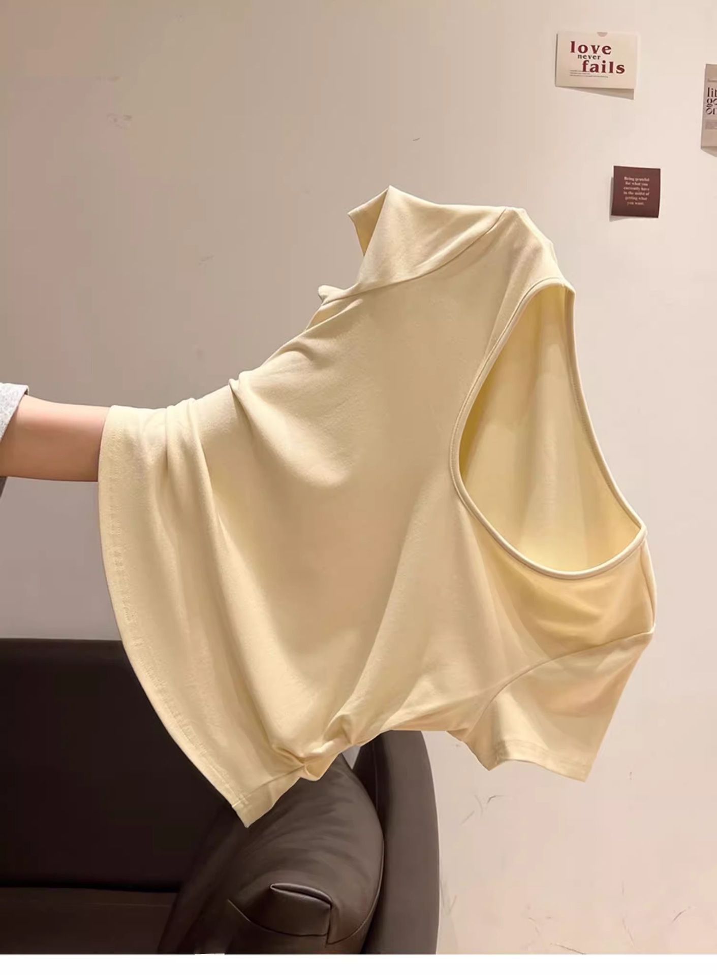 夏季短款褶皺收腰顯瘦高級V領T恤【買一送二】黑色+白色+黃色各一件(到手3件!每件均價333元!)