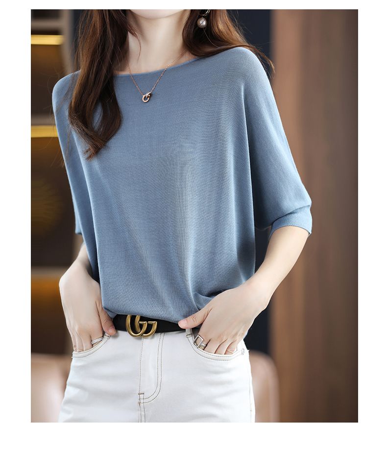 慵懶風洋氣中袖上衣【買一送一】藍色+黑色各一件(到手2件!每件均價449元!)