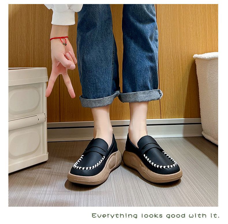 【步履輕盈】厚底增高透氣女鞋【米色】+【黑色】各一雙(到手兩雙,每雙均價549元!)
